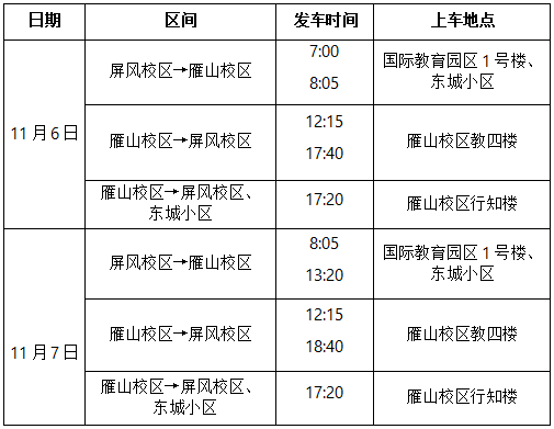注:其他时间段(含夜班车)停运;11月8日起通勤车恢复正常运行。
