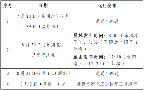 2024年暑假期间校区通勤车安排时刻表