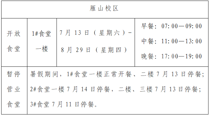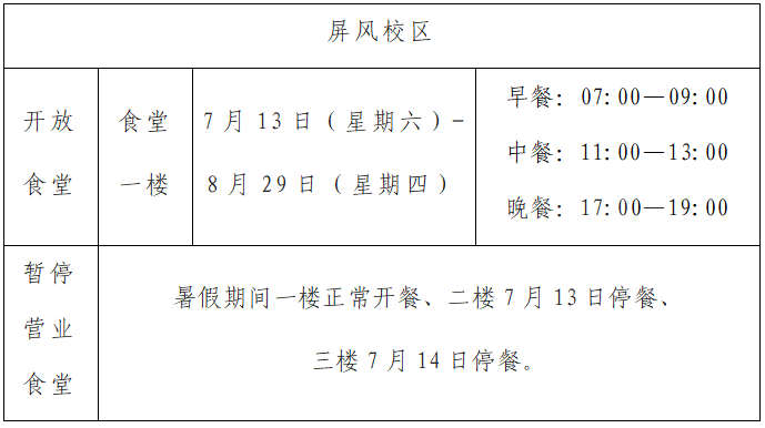 二、暑假期间饮食服务部工作安排