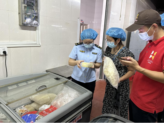 在检查过程中,执法人员重点对后厨和就餐场所的环境卫生、食品库房原料分区分类摆放及进货生产日期标注、加工制作过程控制、人员健康管理、食品留样、食品添加剂管理及使用等重点环节进行了全面检查。并对检查中发现的问题,提出明确的整改意见。