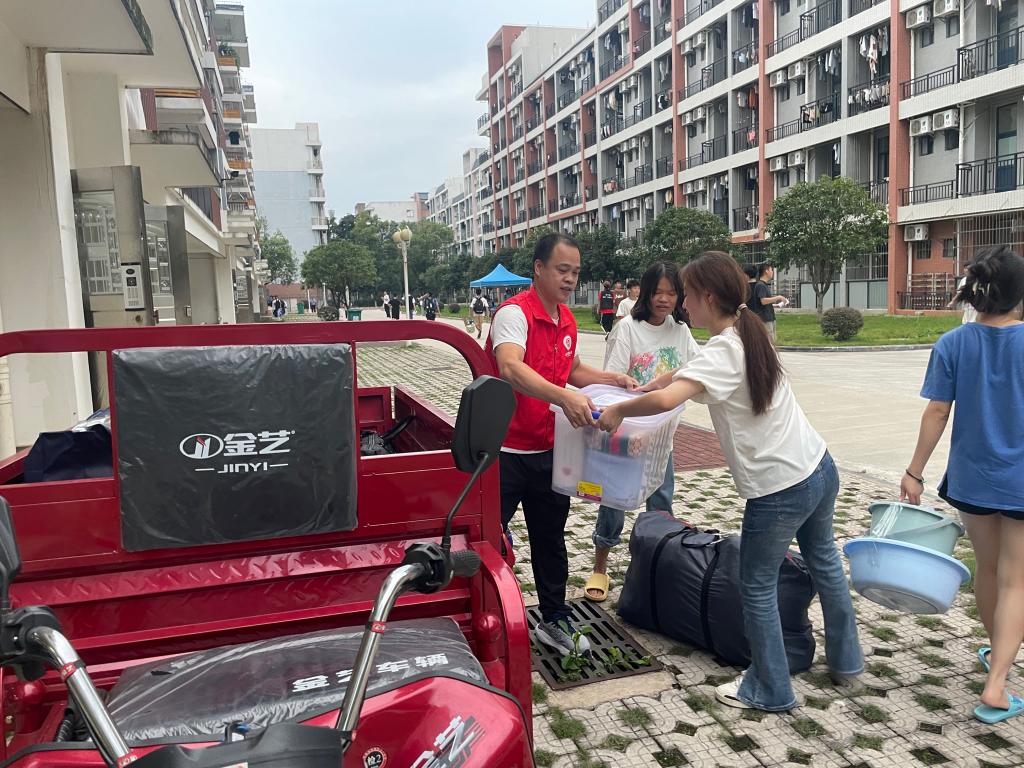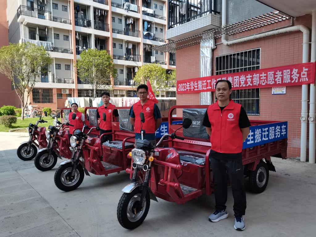 聚力民生办实事,细化服务送关怀。为了给学生运送行李提供便利,真正做到办实事解难题。后勤集团党支部特推出“志愿者服务队”免费为学生运送行李活动,组织调度了10辆电动三轮车,主动承担起“搬运工”和“摆渡车”的角色,全天候为搬迁学生义务提供行李运送,打通学生服务的“最后一公里”。