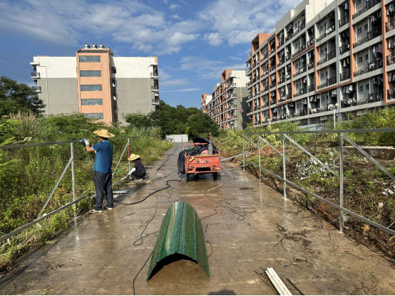 由于雁山公寓二号组团学生人流量大,后勤集团与基建处充分考虑师生诉求,研究制定切实可行的方案,提前部署,组织施工队对道路进行开辟,并在道路两旁搭建挡板以保护师生免受蛇虫鼠蚁叮咬,不仅消除安全隐患,为广大师生提供安全出行保障,进一步提升了师生的获得感、幸福感和安全感。同时架设路灯既解决师生夜间安全出行的实际问题,又能美化、亮化校园。通过“树一盏灯、照一块路、亮一片天”,实现“暖众人心”的美好效果。