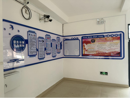 公寓中心精心打造文化墙,文化墙有习近平总书记对广大青年的寄语,为当代青年成长指引航向;有学生公寓安全须知,警醒学生提高防诈骗意识;文化墙充分发挥了积极的教育功能,增强了校园环境育人的理念。公寓中心试点改建部分垃圾桶放置点,既可以提升学生的环保意识、垃圾分类的能力,也便于工作人员进行垃圾清运和环境保洁工作,助力美丽校园环境大提升。