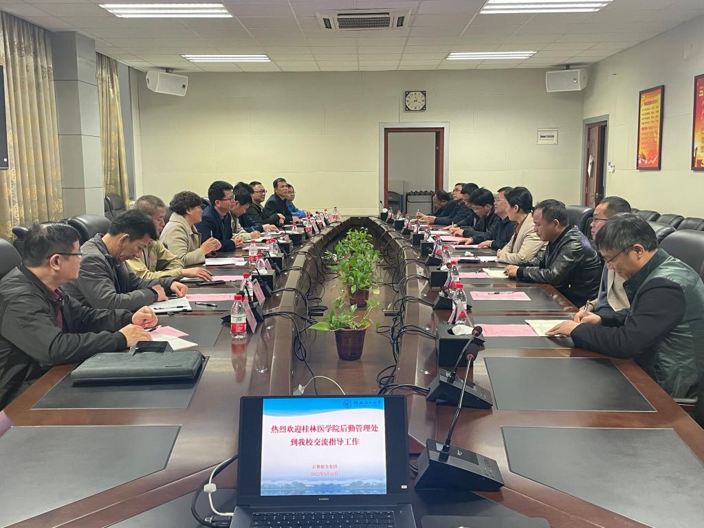 3月16日下午,桂林医学院后勤处处长高东一行10人来我校雁山校区交流调研。后勤集团党支部书记秦勤忠,副总经理唐静妮、侯辉,及资产处、校医院、后勤相关科室等负责人出席座谈会议。