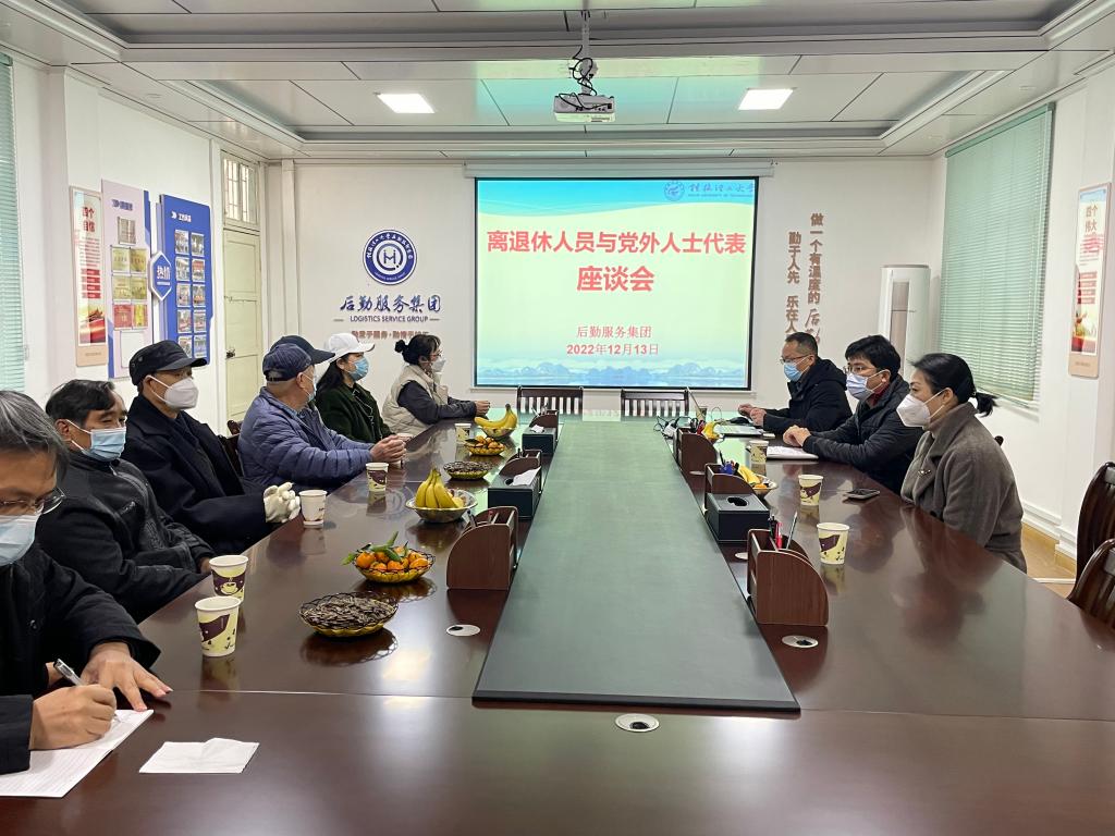 12月13日上午,后勤服务集团在党员活动室举办离退休老同志及党外人士座谈会。八位离退休老同志及党外人士代表与后勤领导干部欢聚一堂,共同为后勤的发展出谋划策。集团副总经理唐静妮、侯辉等出席了本次座谈会。