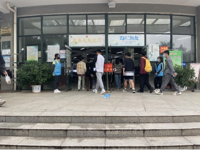 后勤志愿者帮师生扫码、维持秩序