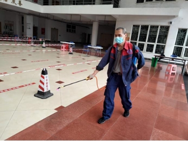 后勤集团为学校核酸检测工作做好保障服务。及时做好全校各个检测点消杀消毒等; 每天安排2名志愿者参加核酸检测服务,进行核酸检测扫码、录入、装袋、封箱等工作,并维持好后勤核酸检测点秩序;同时,加班布设维修,完成雁山校区临时核酸检测点的电源、照明灯布设,确保了我校全员核酸检测工作顺利完成。
