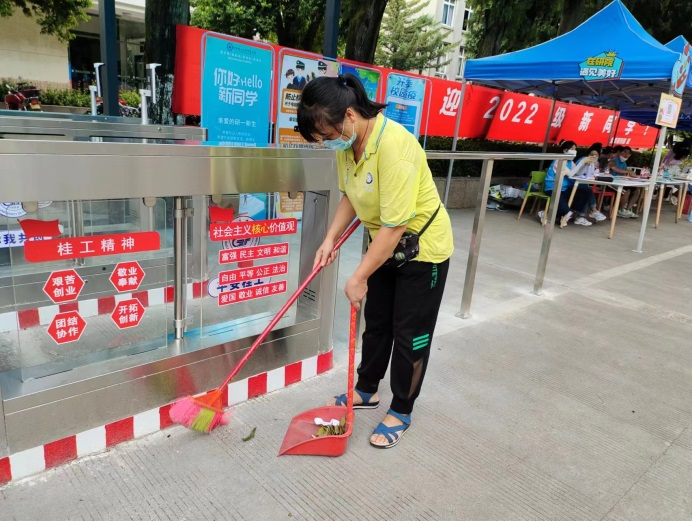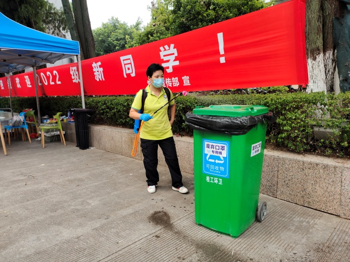 迎新前夕,物业中心对新生通道、新生接待点、食堂周边等重点场所进行不间断卫生保洁及消毒工作;对校园各景点开展清洁美化工作,力争为新生呈现美丽、整洁的绿色校园。