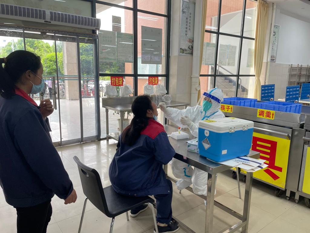 为认真贯彻落实自治区下发《全区各级各类学校新冠病毒核酸检测实施方案的通知》文件精神和学校疫情防控相关要求,及早排查消除校园内疫情防控风险隐患,3月31日下午,后勤服务集团第一时间联系医院检测机构上门服务,为全体后勤工作人员进行核酸检测。