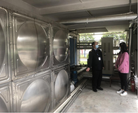 本次检查的重点是热水二次供水设施的卫生管理情况、水质自检记录、供管水人员健康证、水箱清洗记录、水质检测报告、涉水产品批件。蒋科长充分肯定了我校热水二次供水设施环境卫生、管理措施等方面的工作,并对日后需要注意的事项提出了宝贵的指导意见。
