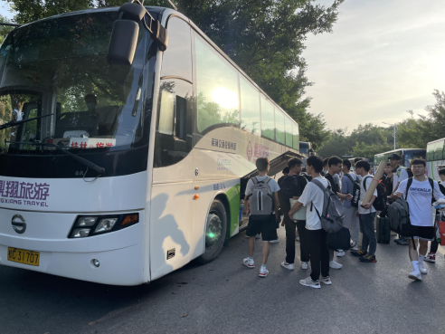 学生乘坐校车返回屏风