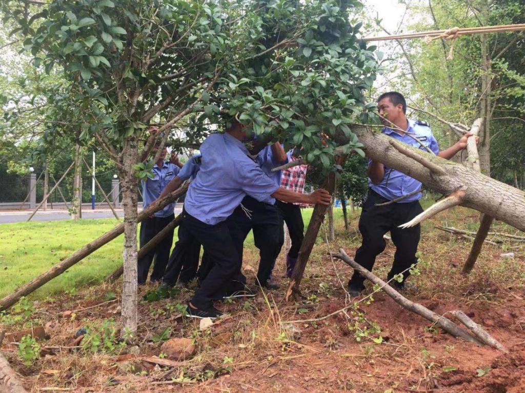 众人拾柴火焰高,在校保卫处和后勤集团物业中心的共同努力下,银杏树成功复位。下一步物业中心将进一步排查,切实做好日常养护工作,尽量减少极端天气出现时苗木出现倒伏、折断等情况。