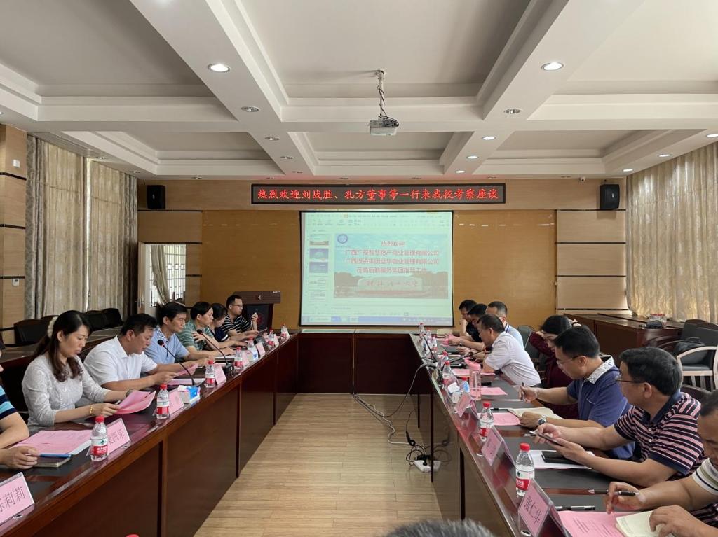 近日,广西广投智慧物产商业管理有限公司执行董事刘战胜、广西投资集团璧华物业管理有限公司执行董事孔方等一行十一人到访太阳成集团122ccvip后勤服务集团,集团直属党支部书记秦勤忠、集团副总经理唐静妮、侯辉以及后勤各中心负责人一行陪同调研。