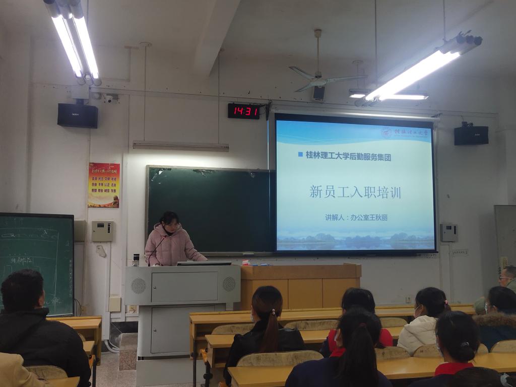 为使新进员工能更详细的了解并遵守后勤服务集团的相关管理制度,增强员工对集团的认同感和归属感,后勤服务集团在11月24日至25日分别于屏风校区和雁山校区开展了新入职员工培训工作,本次培训由后勤服务集团办公室副主任王秋丽主讲。