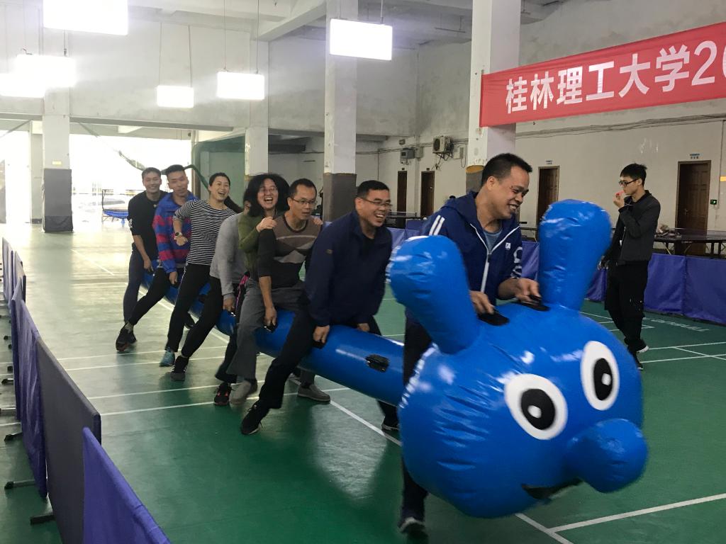 教职工趣味运动会共设技巧大比拼 、指压板挑战赛 、摸石头过河、连体兄弟旋风跑、速度大比拼等五个团体比赛项目。每一个比赛项目的设置旨在锻炼大家动手动脑和团结协作能力,这不但是智慧和体力的角逐,更是团结和协作的完美比拼。后勤的教职工们仔细琢磨每项比赛的规则,反复尝试、练习;比赛过程中他们更是激情饱满、全神贯注,团结协作。