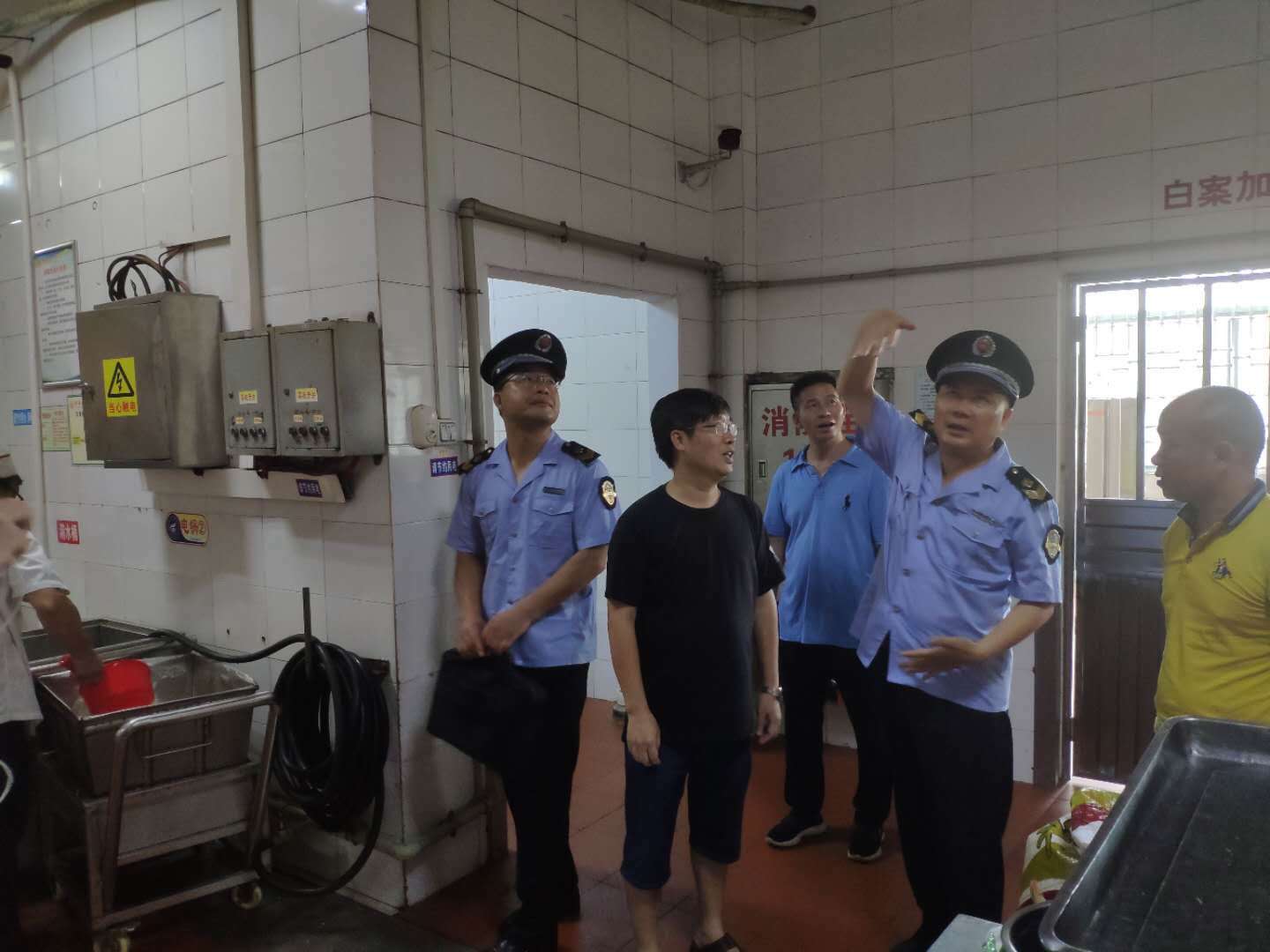 6月21日上午,桂林市市场监督管理局稽查支队政委李智、餐饮服务稽查科科长李同标等一行在雁山区市场监督管理局领导的陪同下到我校雁山校区食堂检查指导工作,我校后勤服务集团饮食服务中心副经理何汉勇陪同检查。