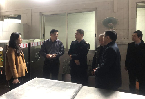 聂平安副局长一行在学校屏风食堂对售饭窗口、操作间、食品仓库食品采购中心等进行了深入细致的检查,并详细询问了原材料采购登记台账和索证索票、餐具消毒、工作人员健康检查等情况。