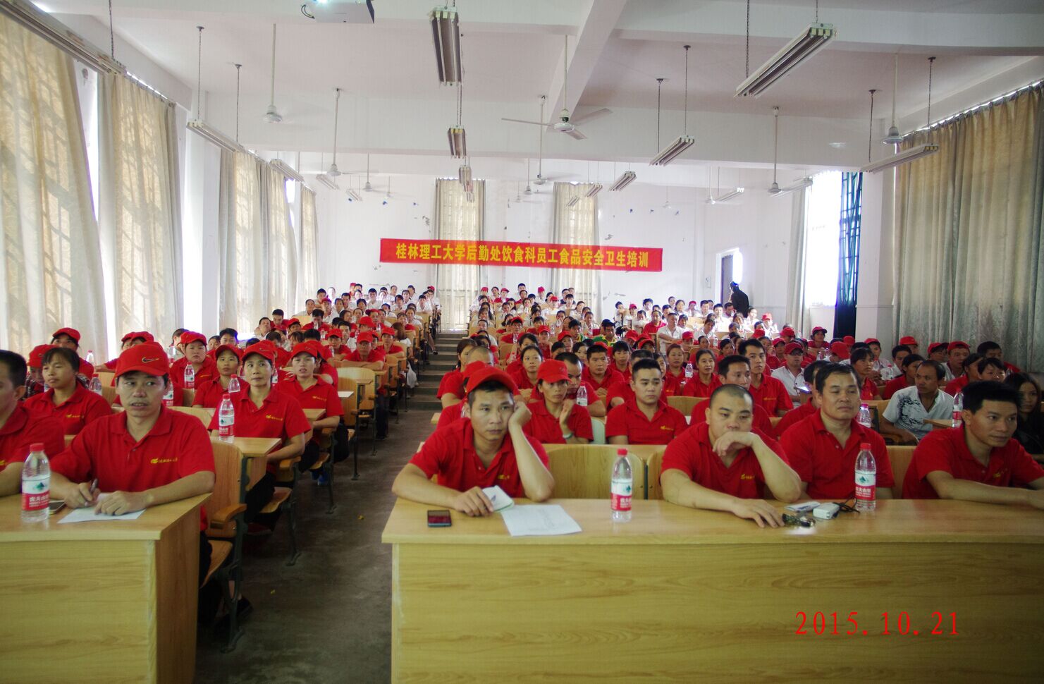 为使全体员工了解食品安全的重要性,树立正确的食品卫生观念,贯彻领会我国新《食品安全法》精神,饮食管理科于分别于2015年10月21日在雁山校区,10月22日在屏风校区组织召开了全体员工食品安全卫生培训会。内容主要包括了食品安全卫生知识、新《食品安全法》摘要、服务礼仪等多项内容。