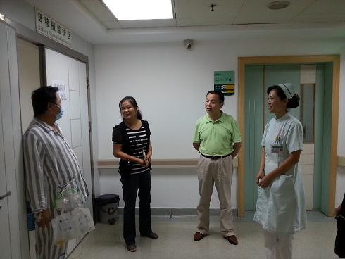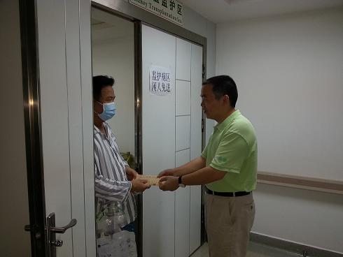 2013年9月25日,学校肖岳峰副校长在工会主席陆平和后勤集团总经理黄文龙的陪同下,到桂林医学院附属医院看望了后勤集团患病职工毛明算及家属。肖岳峰副校长对毛明算说,因为工作原因,学校工会前段时间为他开展的捐款活动没能赶上,这次特地到医院看望,肖岳峰副校长关切的询问其病情,治疗情况,并以个人名义向毛明算同志捐献了一万元现金,希望毛明算同志安心治疗,力争早日康复返回工作岗位。