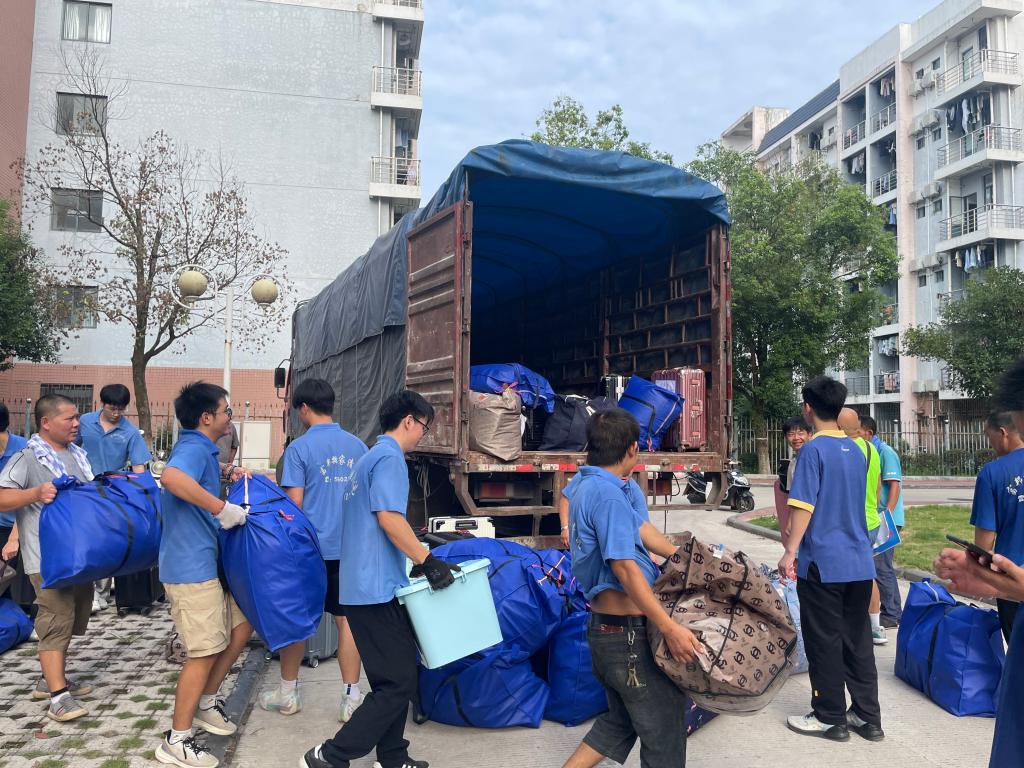 在搬迁过程中,太阳成集团122ccvip主要负责人现场指导搬迁工作,实时督导搬迁进度,并及时协调解决搬迁中遇到的问题。清晨5:40搬迁工作队伍从屏风出发,搬迁工作井然有序地开始,尽管烈日炎炎,但依然做到行李迅速装车,人员准时出发,整个搬迁过程组织有力、安全有序、环节顺畅、有条不紊;以最高的效率帮助一千余名学生将行李从雁山校区顺利地搬运至屏风校区的公寓。
