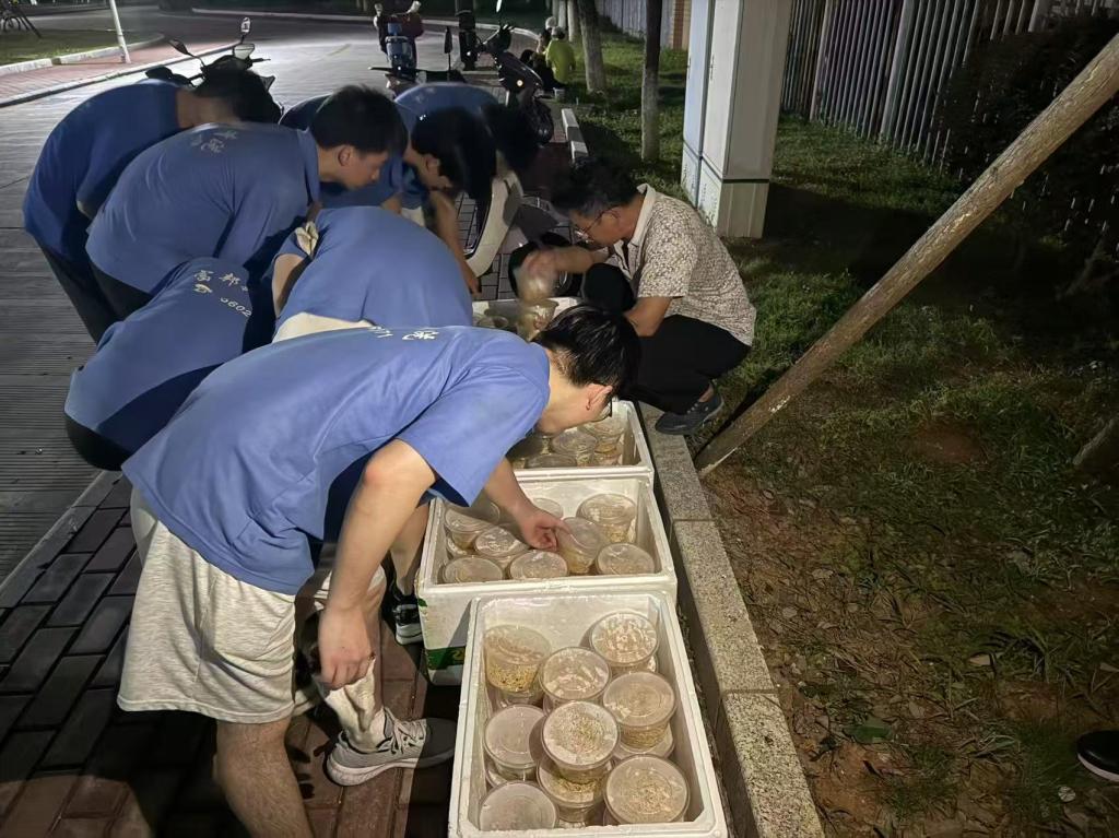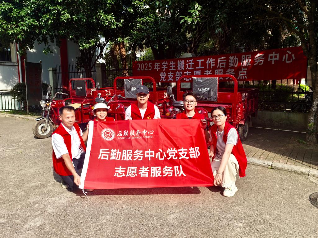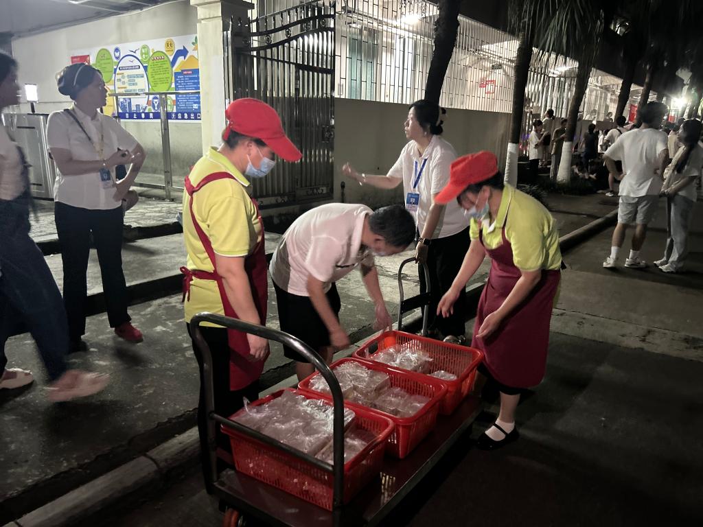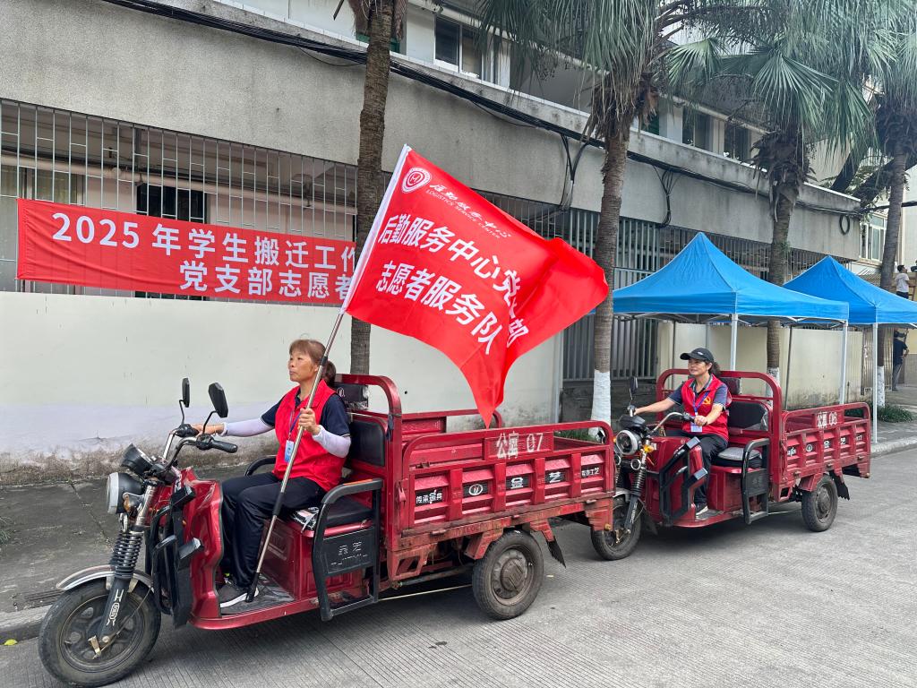 针对行李搬运难题,后勤党支部组建志愿者服务队,贴心设立便民服务点,两校区调度8辆电动三轮车提供候运送服务,行李存放区及25盏照明设施。食堂不仅延长营业时间,还特意为两校区搬迁工作准备了热乎宵夜,确保大家在忙碌搬迁后能及时补充能量。