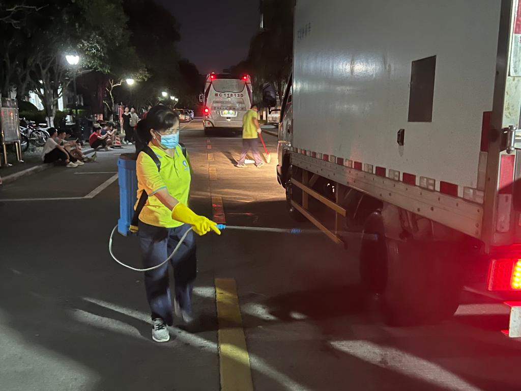 物业工作人员进行清扫消毒