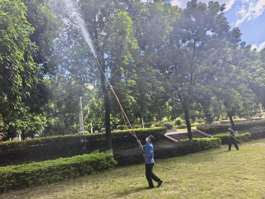 此次消杀覆盖两校区所有公共区域、学生公寓及家属区等重点场所。专业团队用高效环保药剂,对厕所、绿化带、排水沟、景观水体周边、垃圾站等蚊虫易孳生区全方位喷雾消杀;物业绿化人员还对校园主题园林及所有行道树做专项病虫害防治,实现无死角全覆盖。