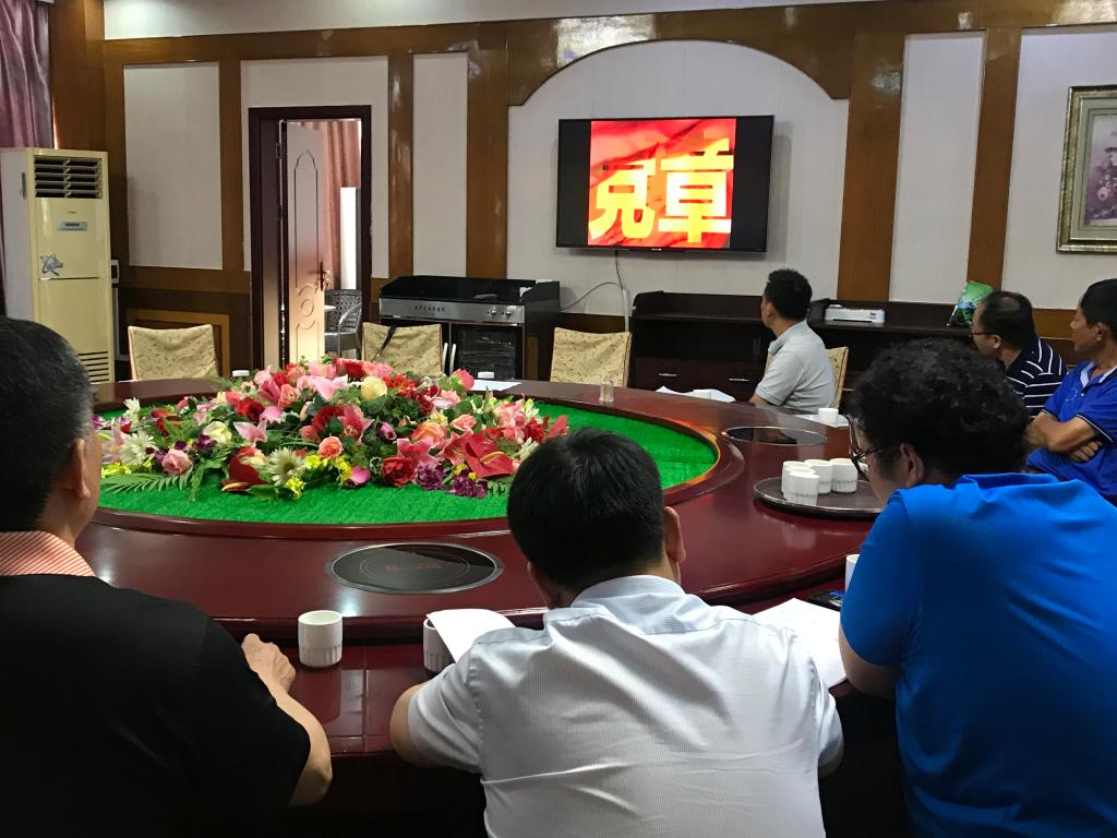 首先支部书记从党章的重要地位、作用发挥和发展历程;十九大对党章的主要修改和重大创新;增强学习、遵守贯彻维护党章的自觉性和坚定性等方面进行了系统的阐述。他指出,支部全体党员同志要严格遵守党章,切实贯彻党章,坚决维护党章,要把学习党章作为党性修养的第一课,作为终身学习的必修课,自觉、经常开展多种形式的学习。之后又组织全体党员学习观看《党章电视辅导教材》,视频中讲到党章是党的根本大法,是全党必须遵循的总规矩。分别从党章总述、共产党员、党的组织、党的干部、党的纪律等五个方面对十九大党章进行了深入解读,内容权威、故事鲜活,使学习更直观、更生动、更具吸引力。