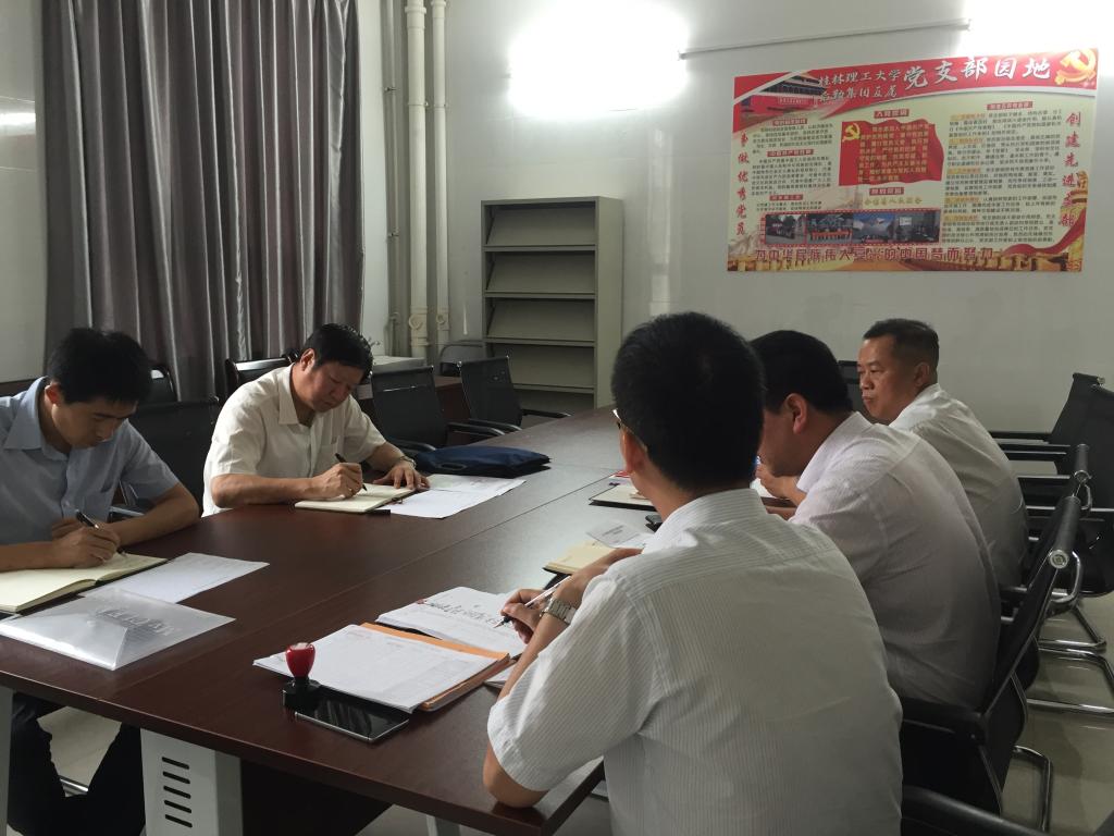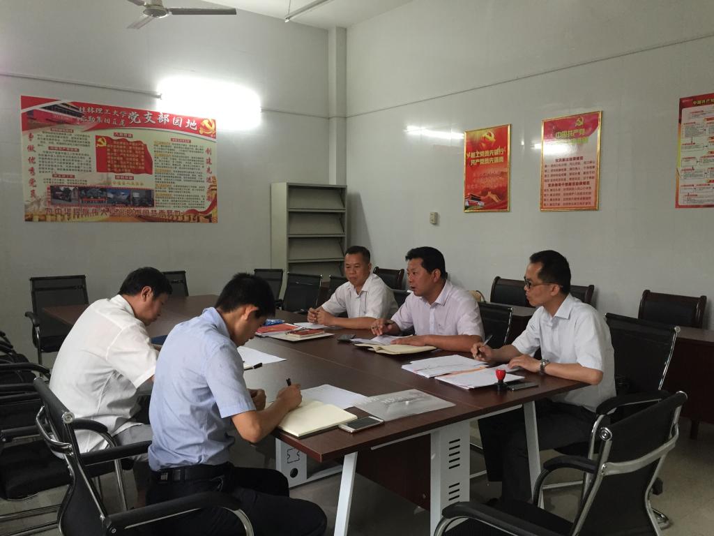 根据《太阳成集团122ccvip开展基层党组织软弱涣散专项整治工作中期检查的通知》的安排,5月31日下午,检查小组副处级组织员梁保熙及宋玉辉科长在雁山后勤党员活动室对我支部开展基层党组织软弱涣散专项整治工作中期检查,后勤集团直属党支部书记刘战胜、组织委员兼纪检委员周玉龙、宣传委员兼统战委员经本钊参加本次督查工作会议。