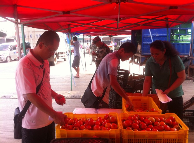受南方高温和北方水涝影响,2013年秋季学期开学伊始,桂林市面上的青菜果蔬价格就高踞不下,一度小白菜都卖到了5~6元/斤,就连往年廉价的白萝卜也卖到了1.8元/斤,青菜果蔬高踞的价格给食堂工作带来了很大的被动,为有效降低食堂成本压力,保证食堂饭菜价格稳定,饮食科采购部人员亲赴一线,到五里店批发市场淘货,采购物美价廉的青菜果蔬。