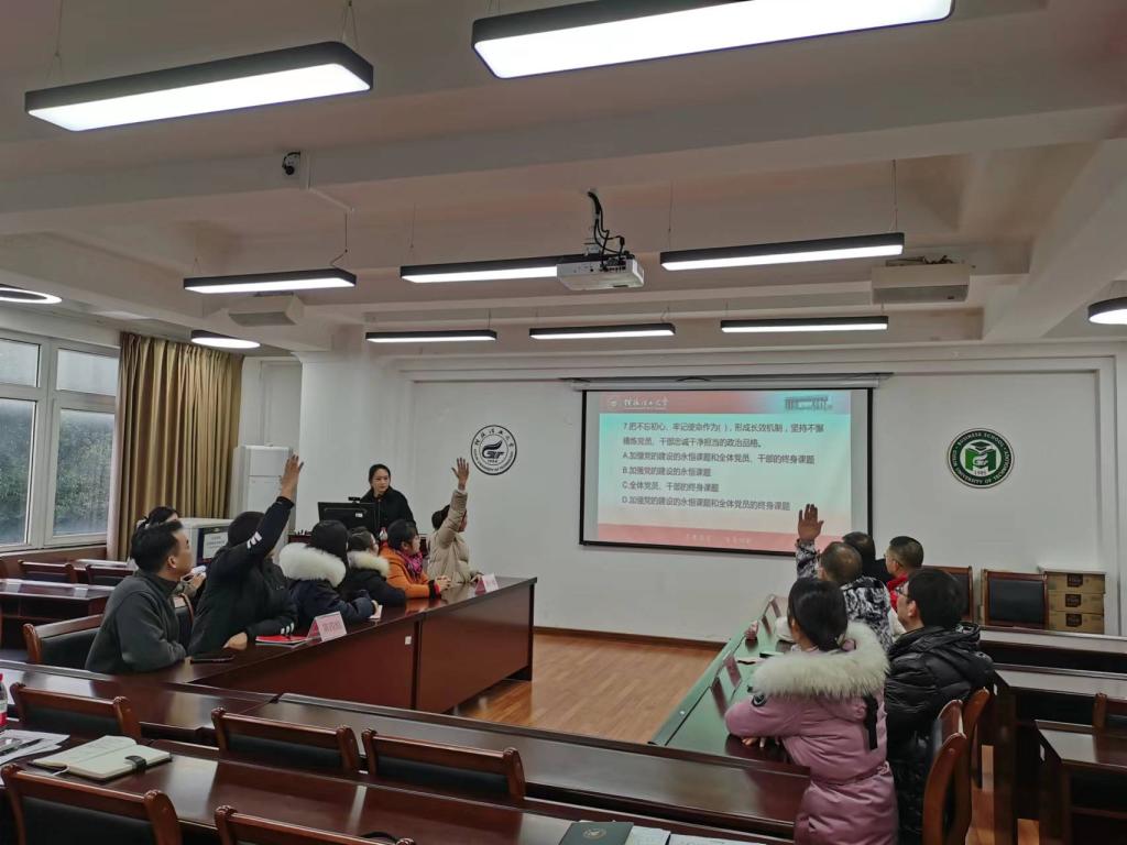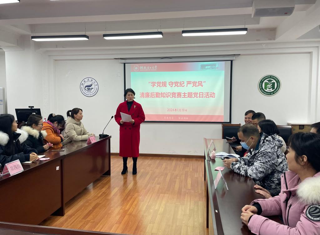 本次主题知识竞赛,设计了必答、抢答题等环节,内容涵盖了《中国共产党纪律处分条例》《中国共产党问责条例》《中国共产党党内监督条例》《中国共产党巡视工作条例》《中国共产党党务公开条例》等党内法规内容,由后勤和校医院组队的4支党员参赛队伍参加答题竞赛。