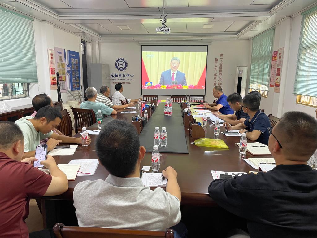 会议最后,全体党员集体观看了《习近平在庆祝中华人民共和国成立75周年招待会上的讲话》视频。