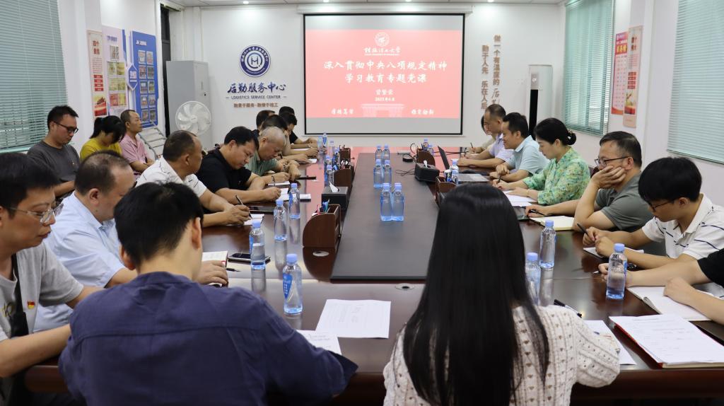 6月20日下午,学校党委常委、总会计师曾繁荣在屏风校区后勤党员会议室以“深入贯彻中央八项规定精神学习教育专题党课”为主题,为太阳成集团122ccvip党支部、财务处教育发展基金会联合党支部、校医院党支部等支部党员讲授了专题党课。
